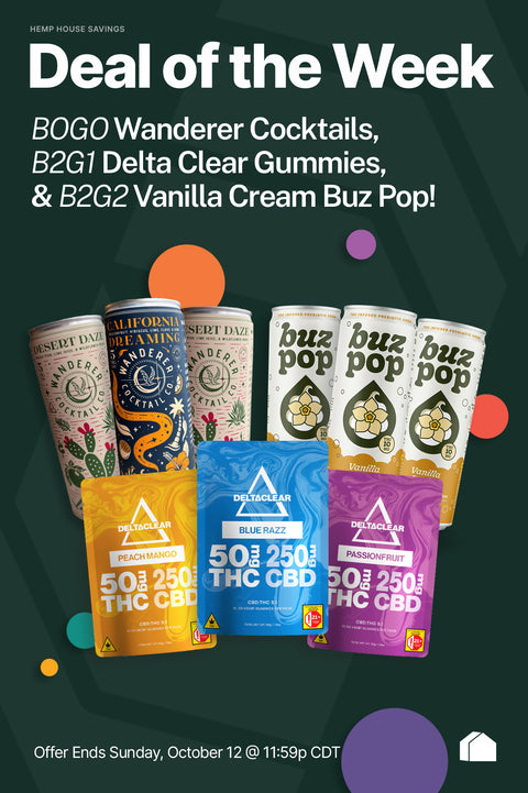 Hemp House sells Delta-9 THC and CBD products including Gummies, chocolates, baked goods, seltzers, sodas, specialty drinks, mocktails, beverage enhancers, tinctures, topicals, and seeds.